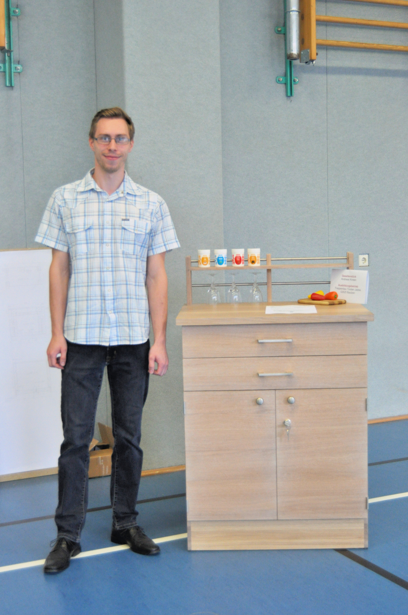 Zwölf Lehrlinge hatten nach den Anforderungen des Prüfungsausschusses ihre persönlichen Stücke entworfen und in 100 Arbeitsstunden in ihren Ausbildungsbetrieben angefertigt. Leider konnten die Angehörigen und die Öffentlichkeit die elf fertiggestellten Stücke in diesem Jahr nicht selbst in Augenschein nehmen. Neun junge Männer und zwei Frauen konnten von Obermeister Ulrich Lange und Prüfungsausschussvorsitzenden Rene‘ Schmeißer am Samstagmittag die Beischeinigungen der bestandenen Gesellenprüfung erhalten. Gleich drei Stücke wurden für den Wettbewerb „Gute Form“ nominiert: der Schreibtisch von Laura Giese, der Tisch von Franz Radtke und der Phonoschrank von Sebastian Timmel sollen im November präsentiert werden. Die Innung bedankt sich ganz herzlich beim BSZ Kamenz für die Bereitstellung der Räume!